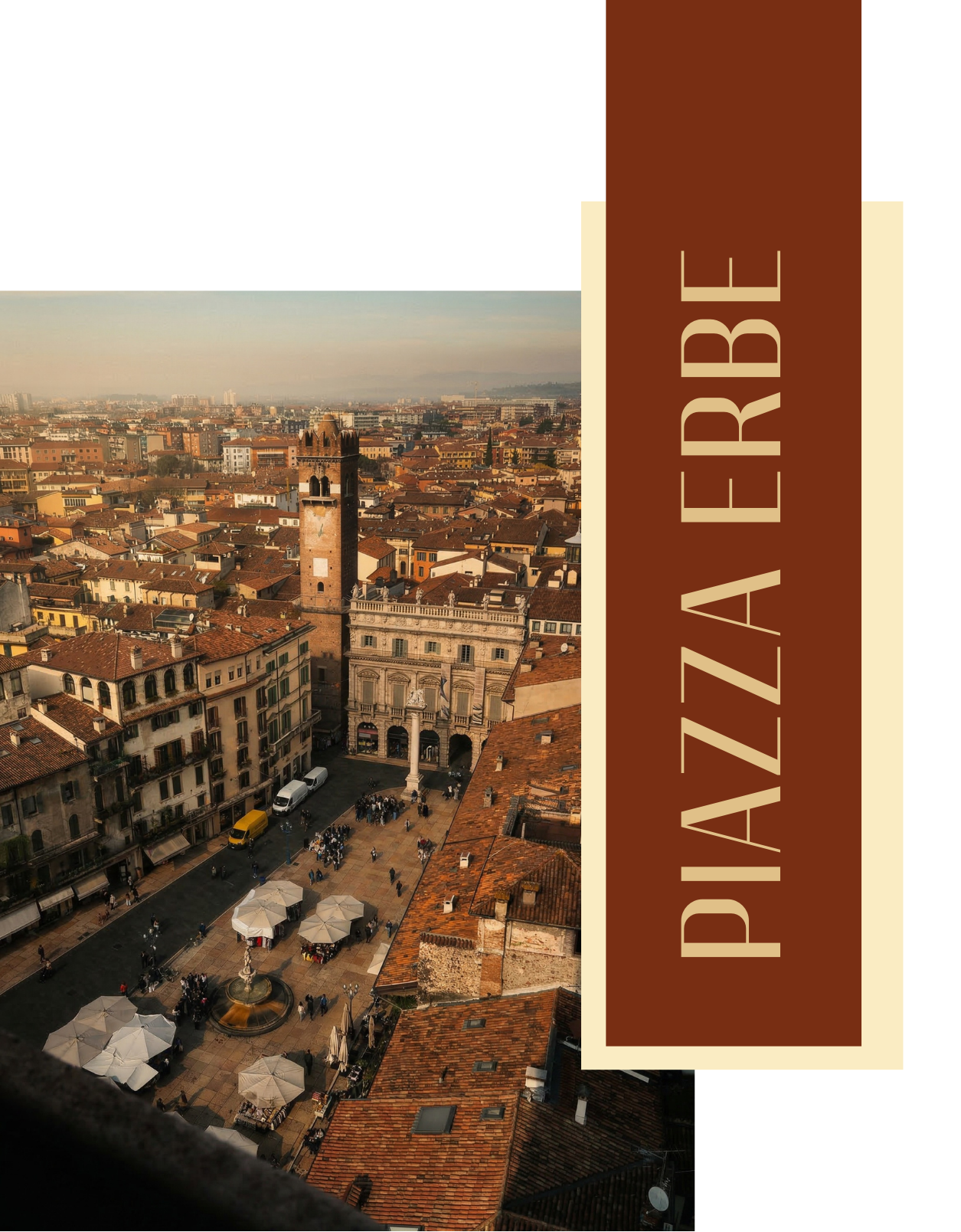 Piazza Erbe nasce dove un tempo si trovava il foro romano, cuore della vita pubblica di Verona.